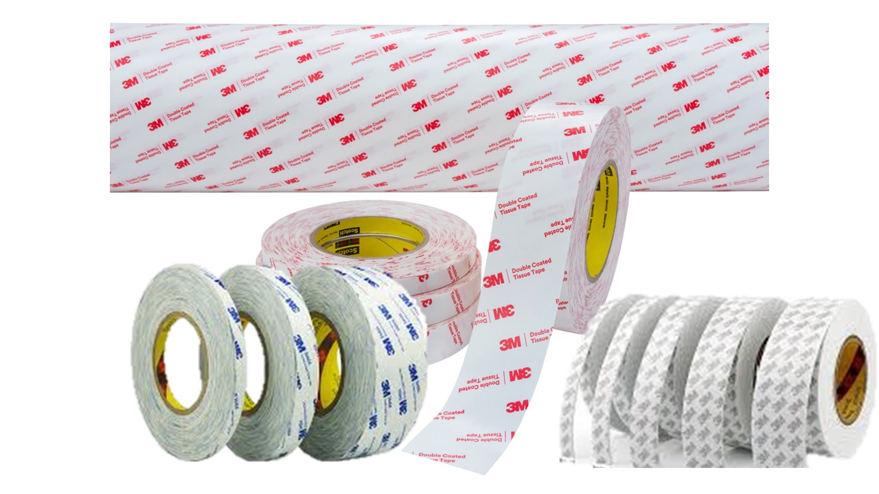 3M double-sided tissue tape is a versatile, thin tape with a tissue carrier that is coated on both sides with pressure-sensitive adhesive, ideal for bonding, mounting, and general-purpose applications, especially for materials with high surface energy.